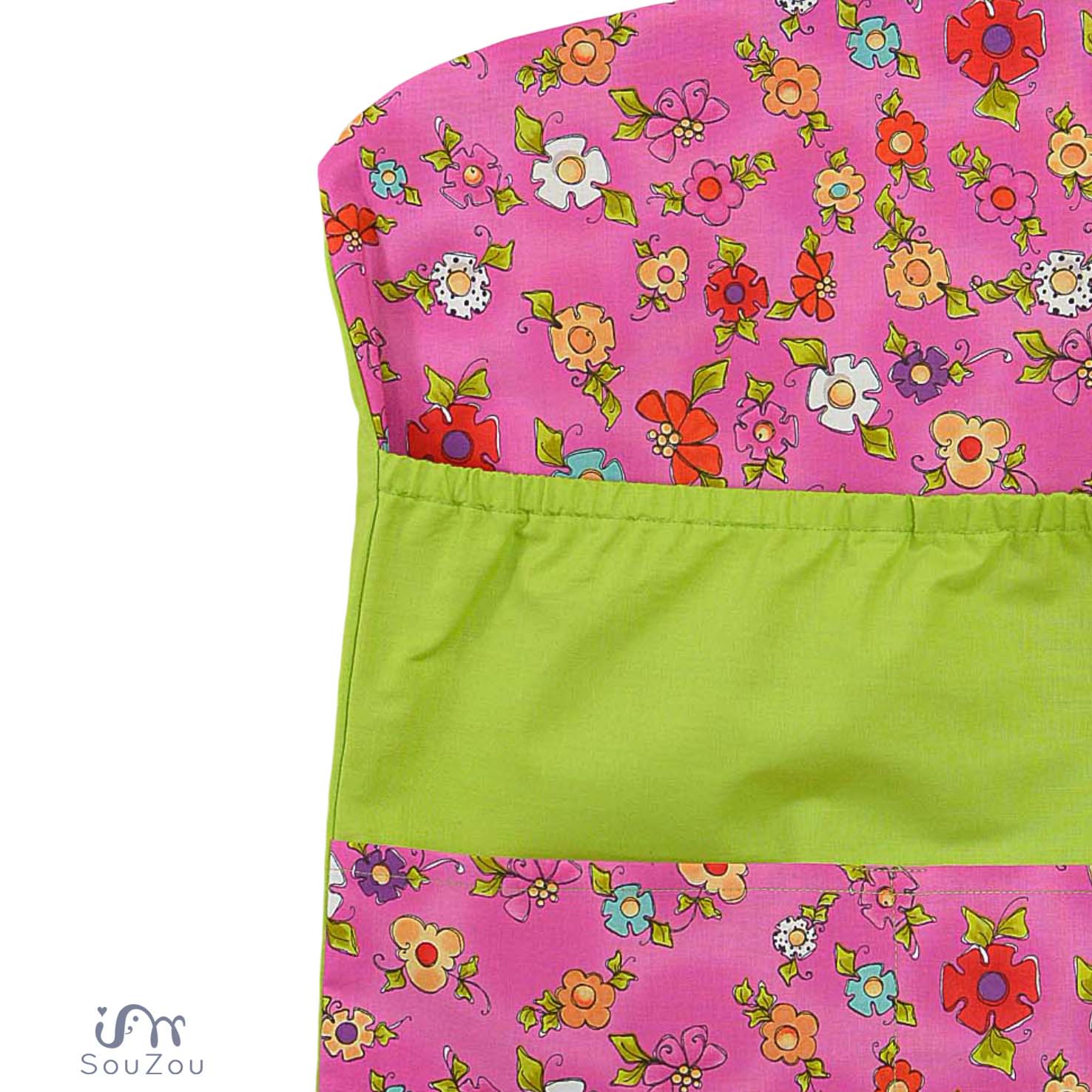 - velká objemná kapsa na gumu a dvě menší kapsy na předním díle uschovají vše potřebné ~ můžete vkládat náhradní oblečení, oblečení na zahradu, zástěrku, bačkorky či oblíbené dětské hračky ...
