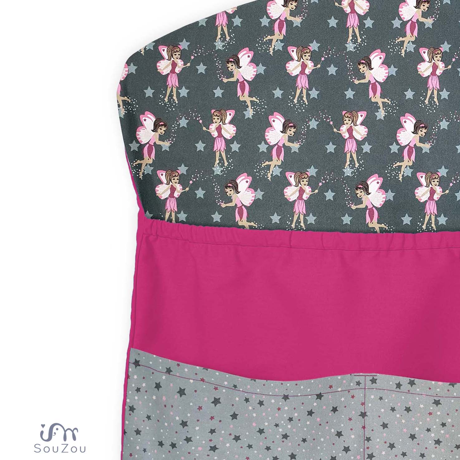 • velká objemná kapsa na gumu a dvě menší kapsy na předním díle uschovají vše potřebné ~ můžete vkládat náhradní oblečení, oblečení na zahradu, zástěrku, bačkorky či oblíbené dětské hračky ...
